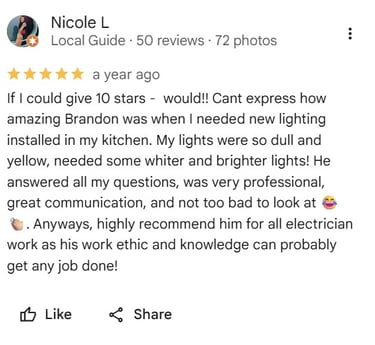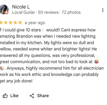My approach is straightforward: prioritize safety first (always NEC/OSHA-Compliant), communicate clearly with clients, and finish jobs on time and within budget. I've completed hundreds of projects, from full home rewires and kitchen remodels to commercial fit-outs, often reducing clients' energy costs through smart upgrades.